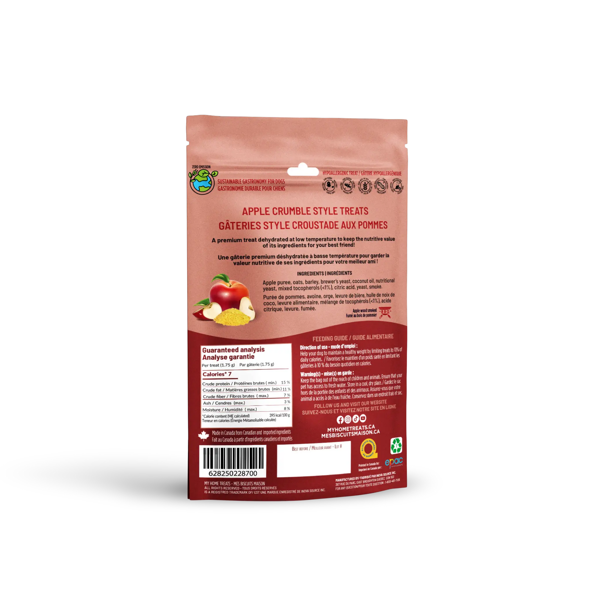 Apple puree, oats, barley, brewer's yeast, coconut oil, nutritional yeast, mixed tocopherols (<1%), citric acid, yeast, smoke