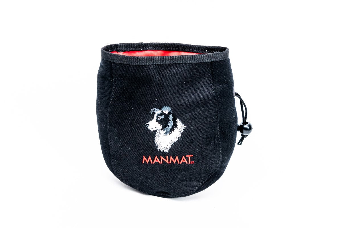 The Manmat Dog Treat Pouch is made from durable and washable material, with a larger size than most pouches. It also includes a convenient belt for easy attachment around the waist. This expertly crafted pouch is perfect for storing treats while on the go, and features an embroidered Siberian Husky design.